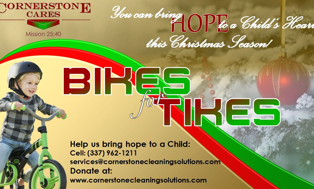 Cornerstone Cares is praying and hoping to be able to provide relief to at least some of this anxiety, stress and hurt that these families and children may be anticipating. We are running a 'Bikes for Tikes campaign for this Christmas Season!